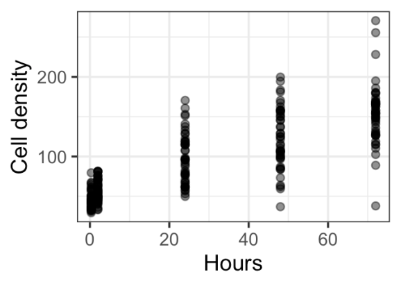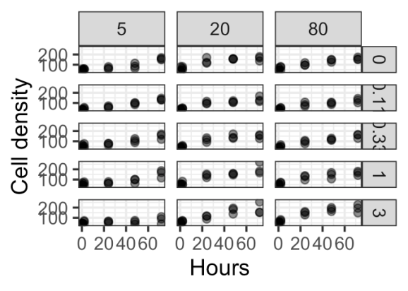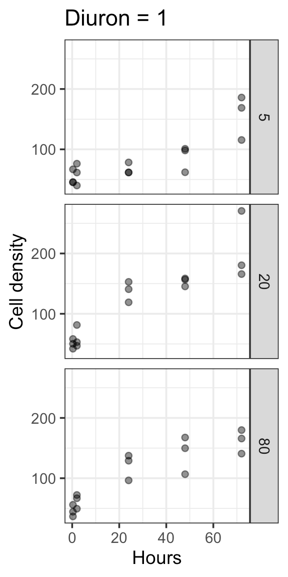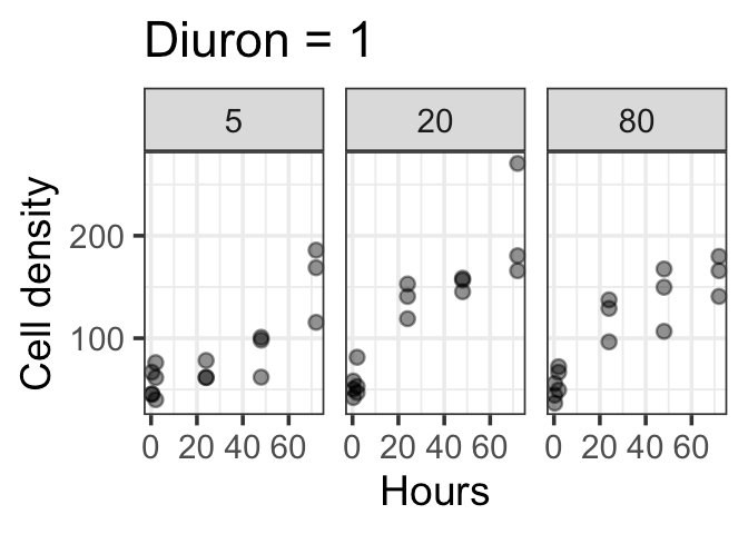labs(x = "Hours", y = "Cell density", title = "Diuron = 1")